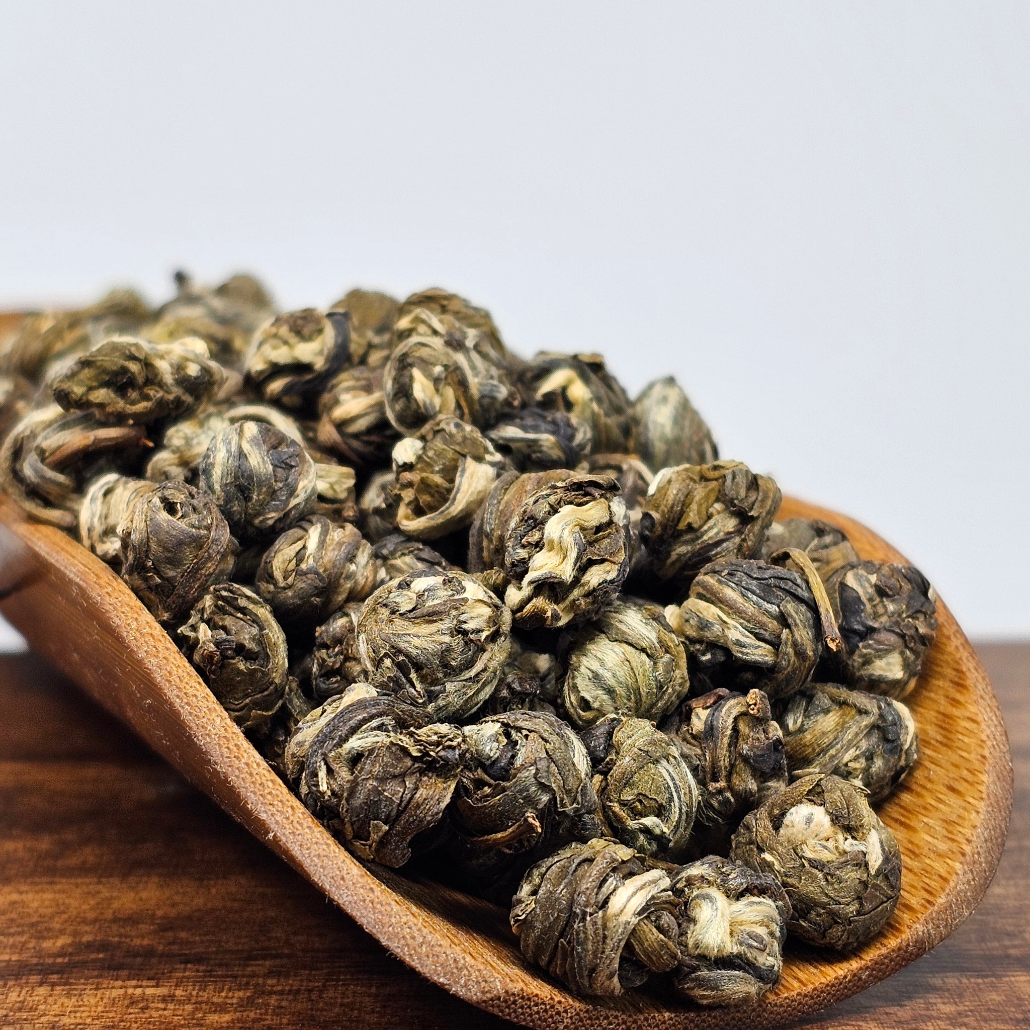 Jasmine Pearl is a widely famous white tea. It is known for it's rich jasmine aroma and the perfect pearl shape the young leaves are rolled into. As you brew the tea, these blossom into supple, young tea leaves that produce many cups of strong liquor. Good for calming, relaxing, and the immune system.