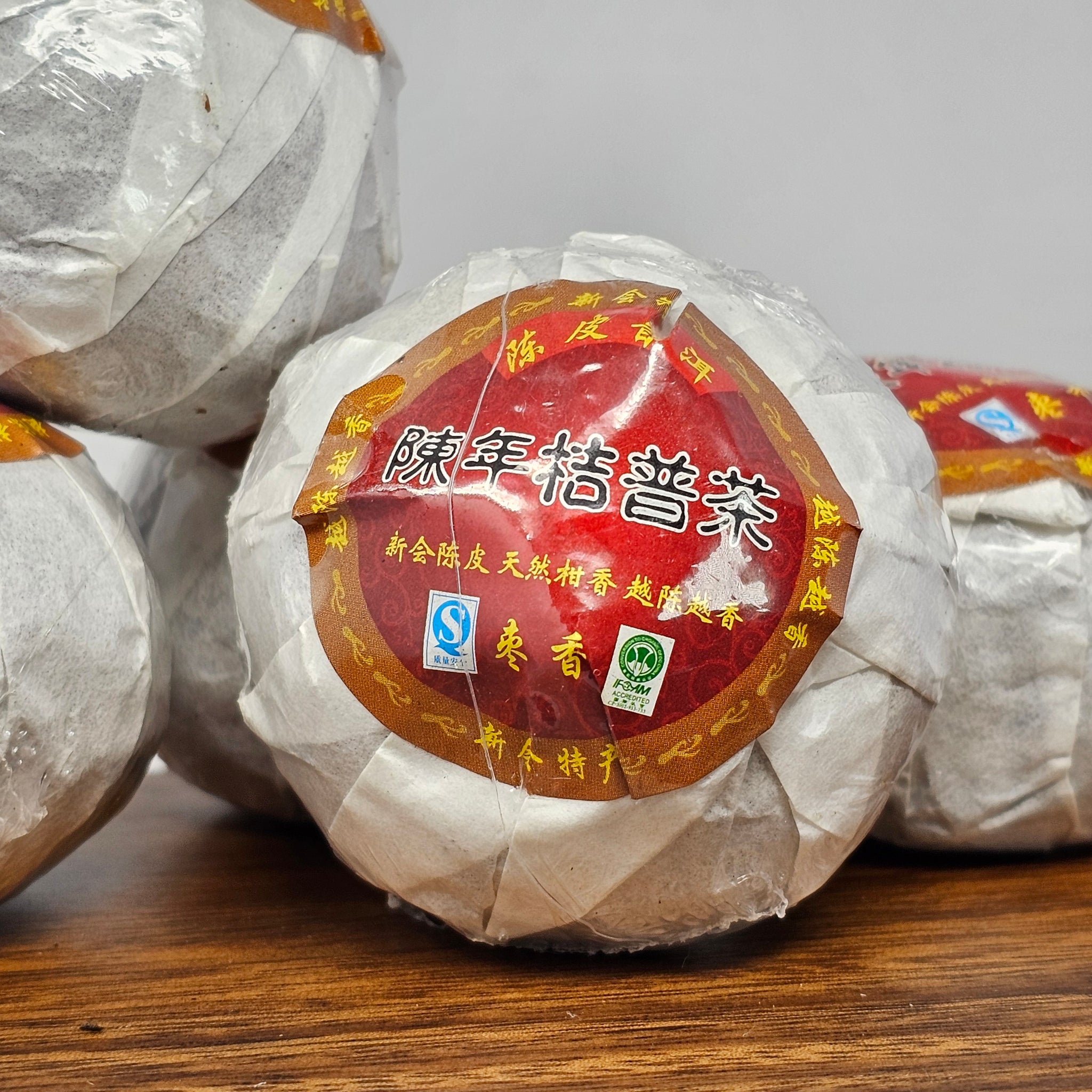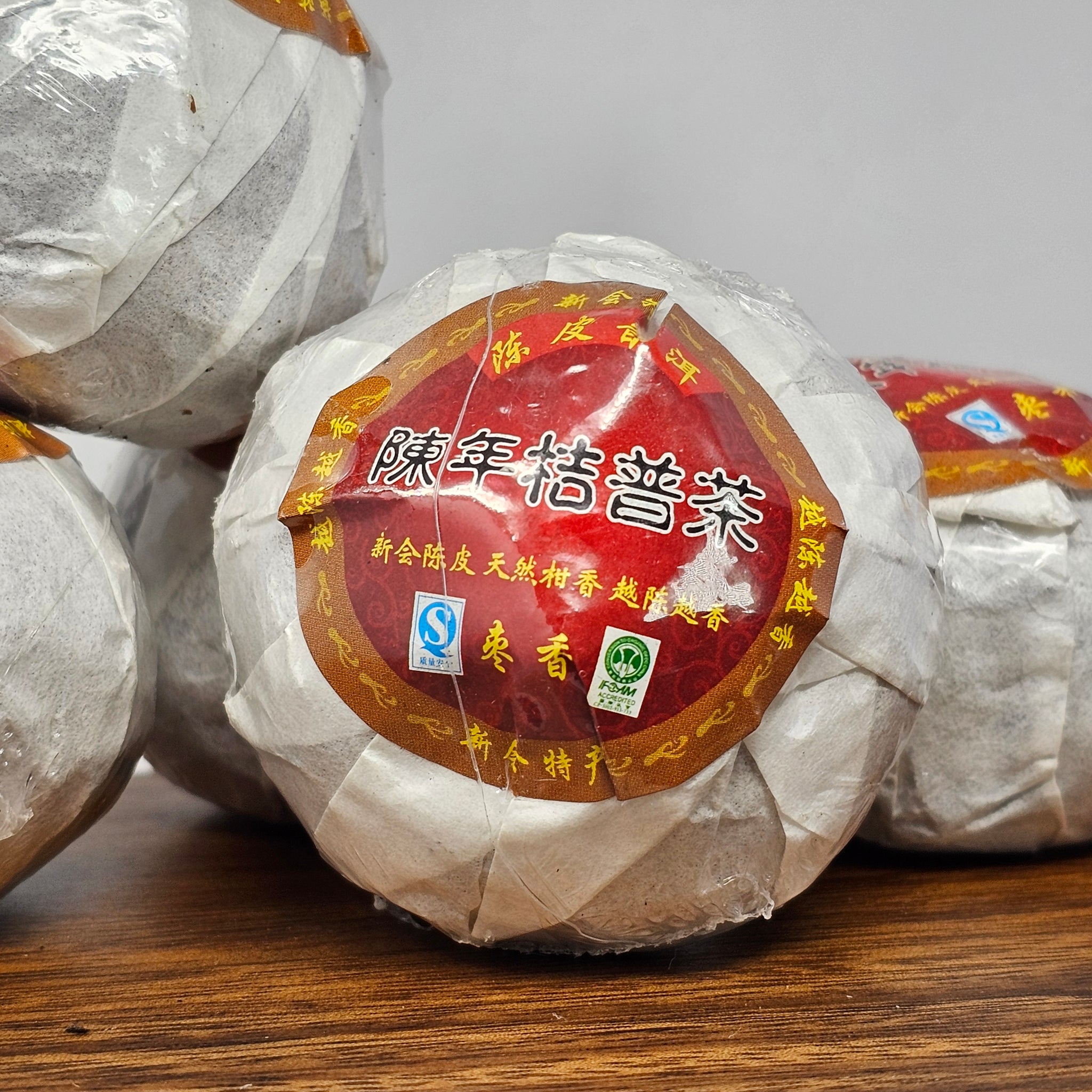 Mature Mandarin Orange rind sun-cured and stuffed with Cooked Puerh. Aged from 2018.